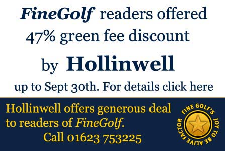 FineGolf readers are exactly the type of golfers that Hollinwell, near Nottingham, wants to attract as visitors, and it is now offering a special discount green fee of only £104 rather than the normal full rate of £195 (a 47% discount) to FineGolf readers in order to celebrate FineGolf’s 104th Newsletter.